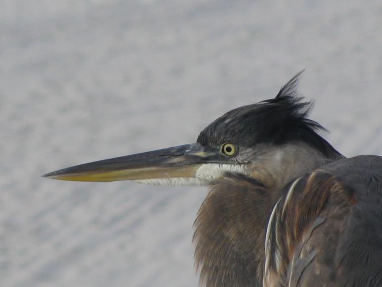 I met this fellow (or lady, as the case may be) earlier this month as it was perched alongside a sandy beach of Alabama’s eastern-most gulf coast. The bird was very large, and I could see it quite a ways back as I walked toward the sand. It was aware of my presence, too, stopping momentarily two or three times to glance in my direction. The closer I got, the slower I walked. First of all, I wanted to get close enough to catch some good pictures, one of which you see here. And secondly, I did not want any bird with a long very sharp beak getting mad at me. Besides, this bird was at least two feet tall, and it was sitting atop a fence railing that made it taller than I am. I would have had to pass within inches of that sharp beak in order to step onto the beach.