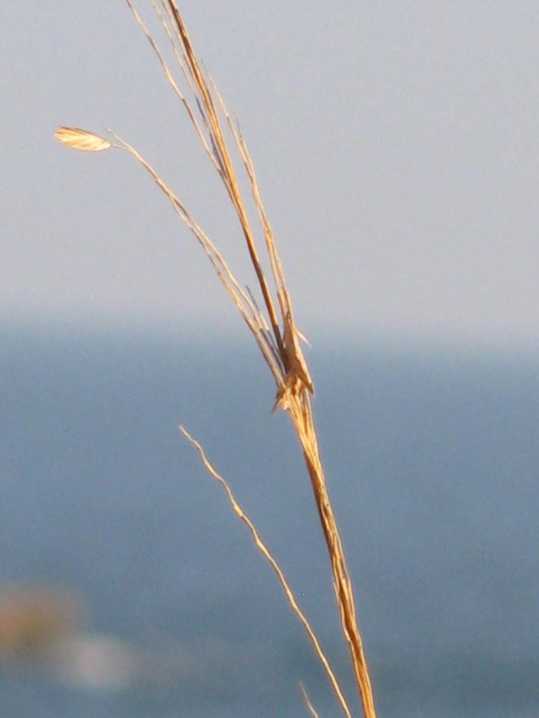 Well, I was on an outing alone, snapping pictures of the birds scrambling in the sand for their breakfast, sailboats slowly cruising by the shore, and people out for a leisurely stroll. I raised my camera to take a picture of something I’ve now forgotten, and I snapped the photo. Only then did I realize that my camera had chosen to change the focus from what I was watching to this lone stalk of beach grass that stood nearby.
