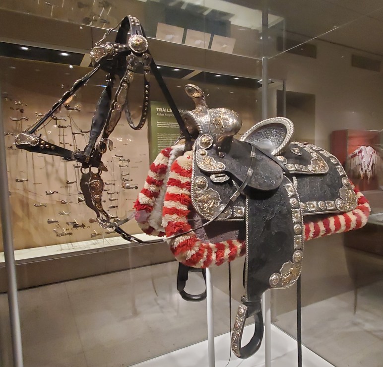This particular saddle and bridle, made of leather, silver, and gold, is on display in a downtown San Antonio, Texas, museum.  I walked around it and admired it for some time.  Because I’m not a horse owner or rider, I knew nothing special about this saddle in comparison to any other saddle.  I just knew what it was.  Nice looking, functional, and in great shape.