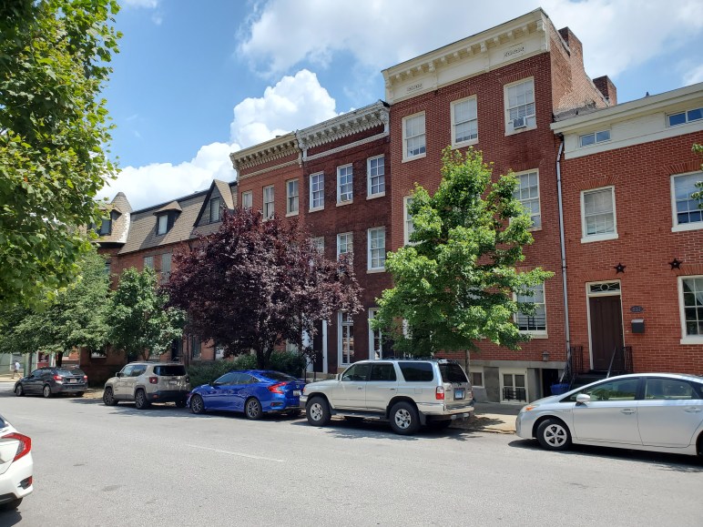 This particular street is in downtown Baltimore, Maryland.  Common walls are shared with sometimes-unmet neighbors in order to experience the conveniences of city life.  If they own a vehicle at all, they must park in their one designated spot on the street in front.  I imagine this to be very similar to apartment living – close quarters.