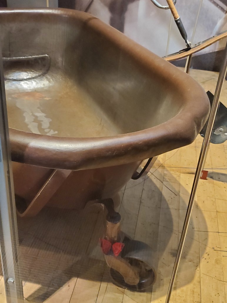 This picture is of a bath tub.  It is a normal, albeit old style, bath tub.  It is brown, of normal size and normal shape.  So what makes this tub any different from any other tub you’ve ever seen?
