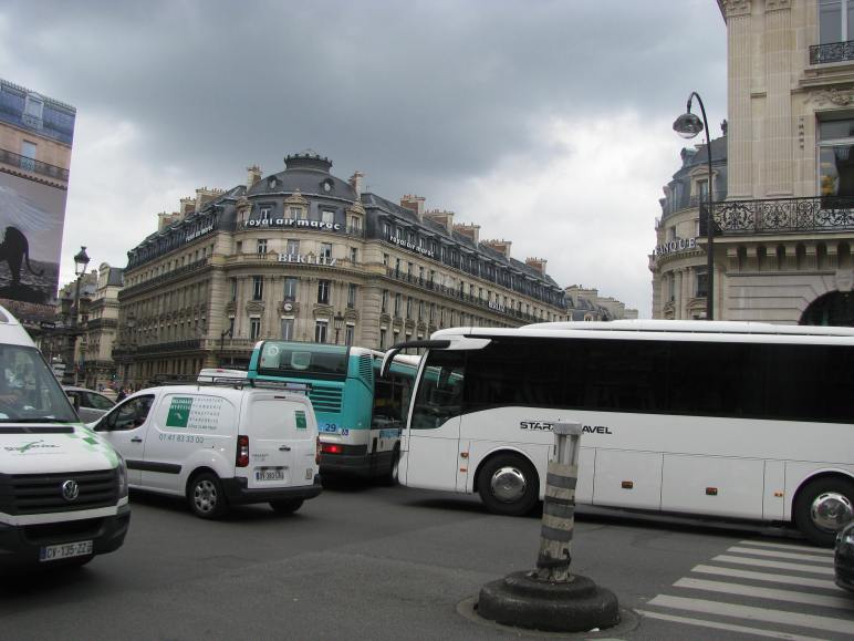 The very busy intersection you see in my picture is right in the heart of Paris.  Of course the traffic and directional signs are all written in French, so they were not readily discernable to us.  However, I never once (in Paris or here at home) have seen a traffic sign to describe what you see here.  You can easily see vehicles of all sizes going at least three different directions all in the same place at the same time.
