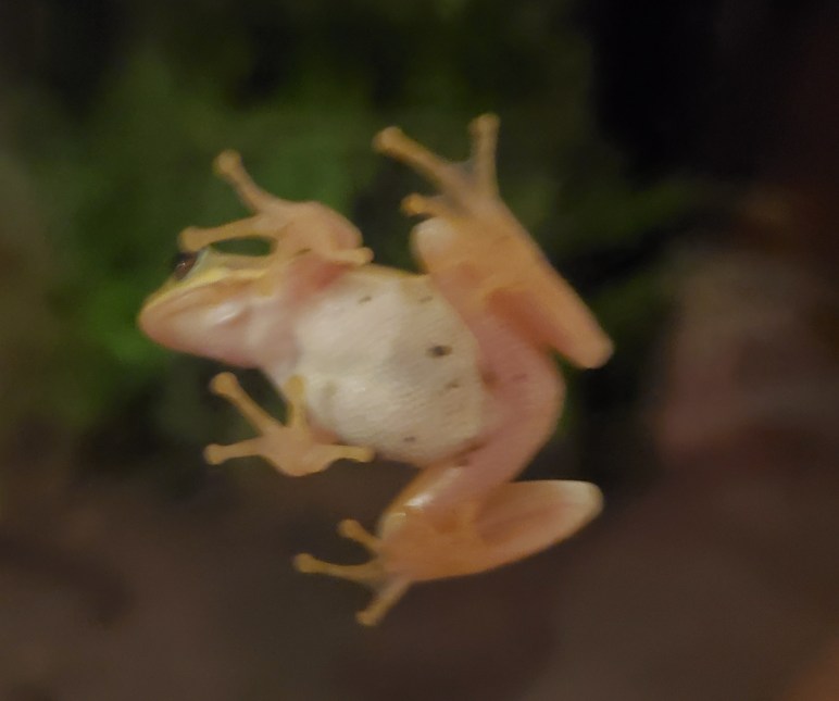 There are frogs like this one that attached itself to our back door.  There are crickets and many other such vocalizing creatures as well.  They all seem to sound off at the same time and are often louder than the television which is just a few feet inside that same door.  It is indeed a lovely sound.