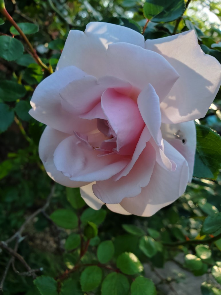 This pink rose and a red one on another bush are the first two blooms of the year in our yard. I was thrilled to see them and even posted pictures of each on social media. Our roses are usually some of the first flowers around us to spring to life each year. Red ones and two or three shades of pink adorn my scraggly looking bushes.
