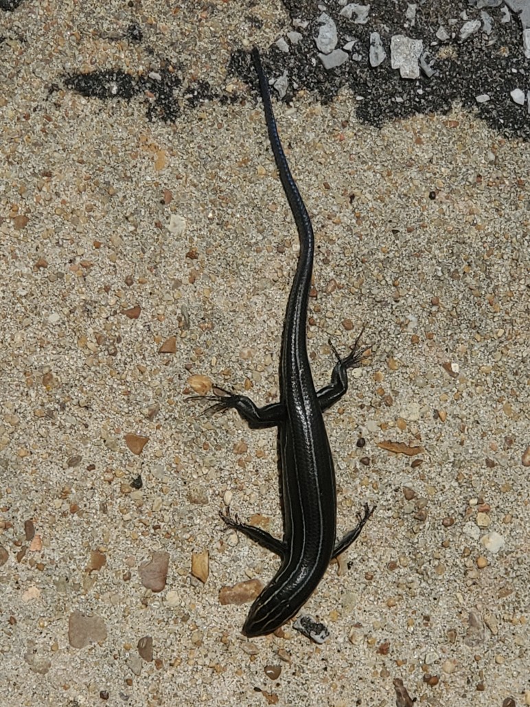 Sunning itself at the top of the outside stairwell, it never moved as I walked past it headed down to the basement fellowship hall. I was only in the building a few minutes and came back up to discover the little fellow still in the same position. Naturally, I reached into my truck, grabbed my phone, and snapped a picture, all the while hoping the lizard didn’t decide to run off before I got a photo of it.
