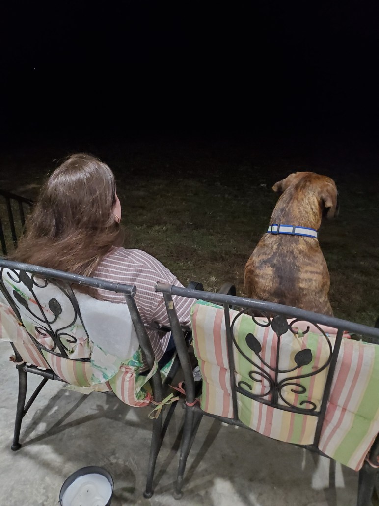 A few weeks ago, we celebrated the beginning of the new year visiting with some friends, grilling steaks, and watching some fireworks.  It was a nice beginning to this already strange year.  My youngest daughter and our friends’ dog sat comfortably in their prime spots on the back porch to watch the fireworks.  Here they sit, staring into the darkness, awaiting the next burst of light.