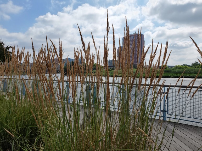 This photo is one I took this past summer as we walked the Riverwalk area of Wilmington, Delaware, one warm morning.  The water was calm, the birds were singing, and the view was very nice.  Oh, but all of that is “blurred” by the tall grasses in the picture, isn’t it?  You correctly assume (trust / believe) that what is beyond those dry reeds is truly a beautiful day.  And it was!
