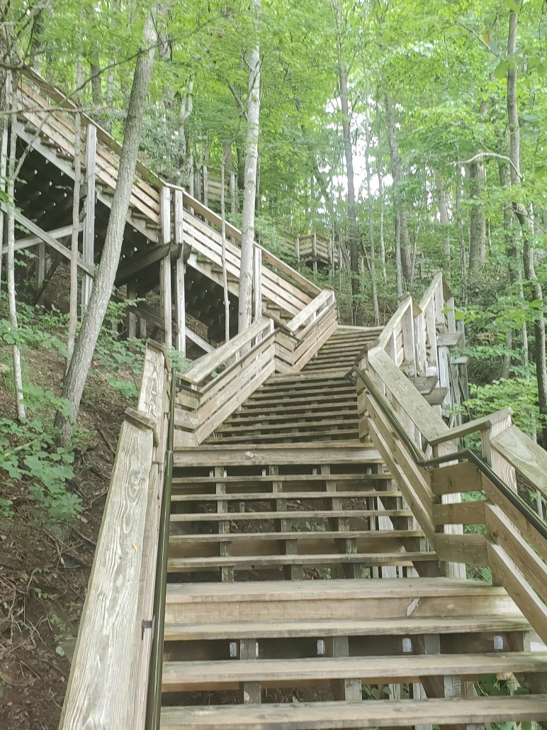 Stairs.  Steps.  Whatever you choose to call them, they are a necessary part of life.  Some are found inside office buildings, some inside homes, and some, like these in my picture, are built on the side of a West Virginian mountain.  We find stairs when we shop, when we go on vacation, when we attend church.  So what is so special about them?