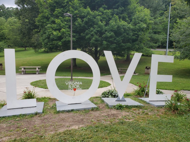 I’ve mentioned to you about the multi-state road trip that my wife and I took this past summer. We made it a point to stop at every state’s welcome center, if they had one, or at least at a sign that represented that particular state. As we entered Virginia and made one such stop, we spotted this sign — L – O – V – E. In much smaller letters, it also says, “Virginia is for Lovers.”