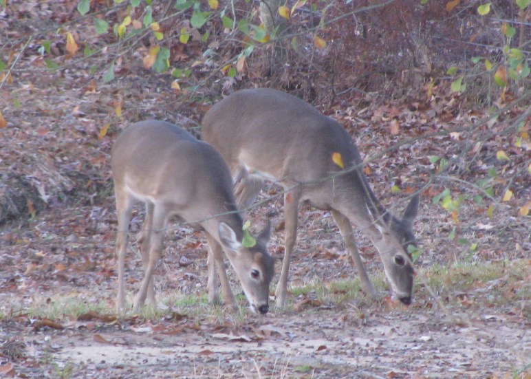 These two deer were enjoying the acorns in the back yard while occasionally glancing up to see if I was still watching and snapping pictures.  They were content in their activity but still very alert to their surroundings.