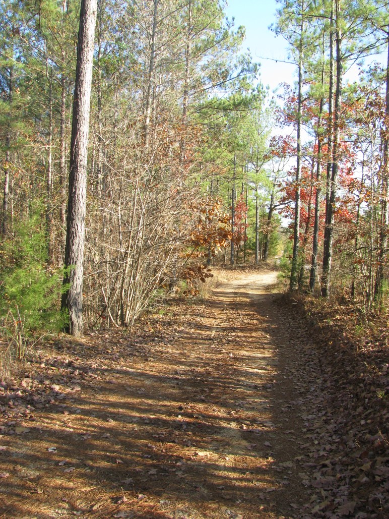 The view in this picture is a look down my parents’ driveway.  When I look at this, I see the changing colors of autumn.  I see falling leaves and bare tree limbs.  I see the dirt and the sun shining through the trees.  But I see and hear a lot more than what the picture shows.