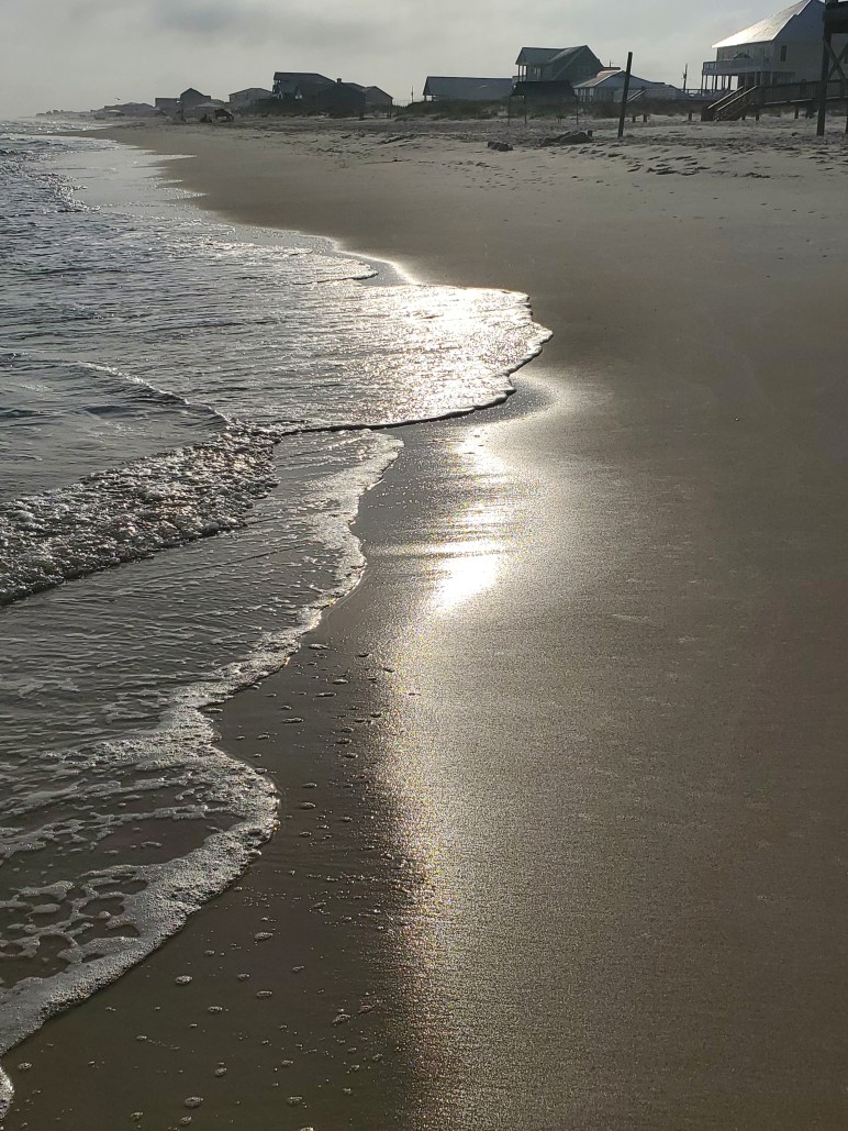 This is a snapshot I took a while back while on one of the beautiful beaches of the Alabama gulf coast.  I like to walk along the water’s edge and watch its ebb and flow right there on the sand.  The shoreline changes with every wave, every move of the water.  Yet, it never goes away.