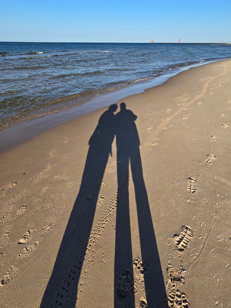 This photo is one of those I didn’t take the time to think about beforehand. I just snapped it as the two of us walked along the pier at Grand Haven, Michigan, one of the many historic towns located on the shores of the vast Lake Michigan. We were taking a trek out to the lighthouse. We wanted to experience the views for ourselves.