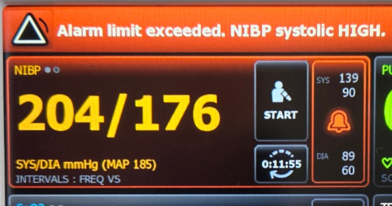 Recent surgeries and illnesses of dear family members have meant that my presence inside the hospital has been a daily occurrence.  On one such occasion, as patient and I watched the nurse get all the necessary equipment hooked up and started, this was the first blood pressure reading that the machine recorded!  “Alarm limit exceeded.”  Indeed!  Did we believe those numbers?  No.  They were “alarming” but not scary, because we knew not to believe what we were reading and seeing.  We knew the truth to be much better than what that particular moment showed us.